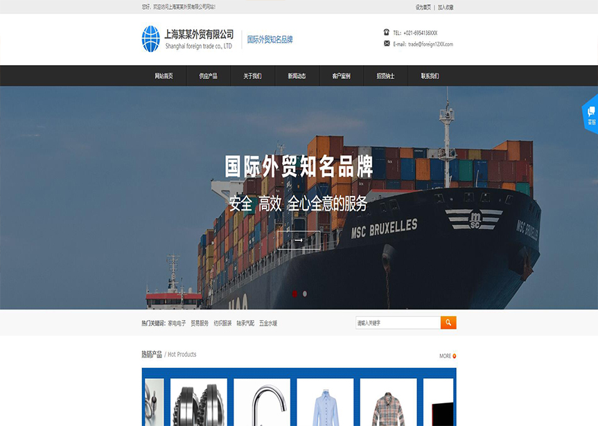 網(wǎng)站模板名稱:(帶手機(jī)版數(shù)據(jù)同步)自適應(yīng)貿(mào)易出口類藍(lán)色網(wǎng)站模板